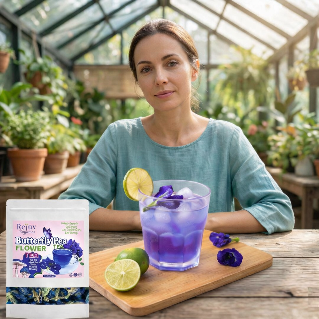 Butterfly Pea Flower Hand Crafted Tea… The Health Benefits of this Amazing Tea go On and ON! Butterfly Pea Flower Tea is tasty, aesthetically pleasing to the eye, and even more beautiful when it is working to beautify your health from the inside out!
